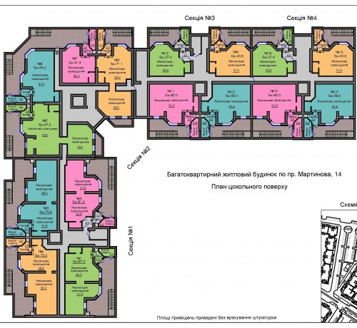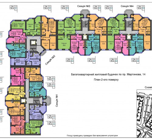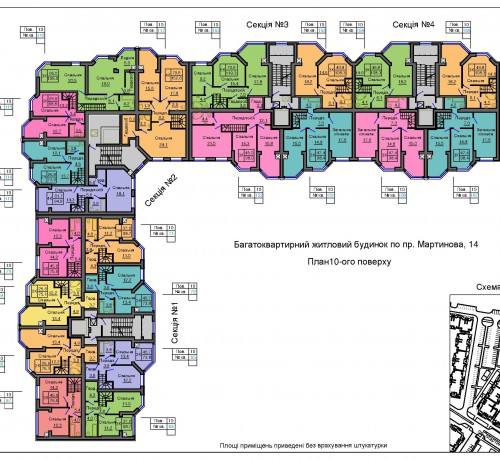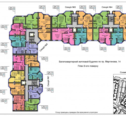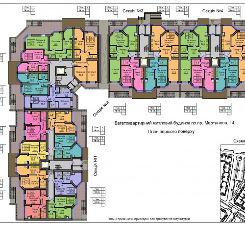 Будинки по проспекту Мартинова, 14 буде мати 189 квартир, серед них одне, двох і трикімнатні квартири, а також дворівневі апартаменти на верхніх поверхах. Будинок має “Г” -образну форму, два під’їзди виходять на північну сторону, ще Дван дивиться на південь і на південний схід. Цокольний поверх займають нежитлові приміщення під офіси, магазини та ін.