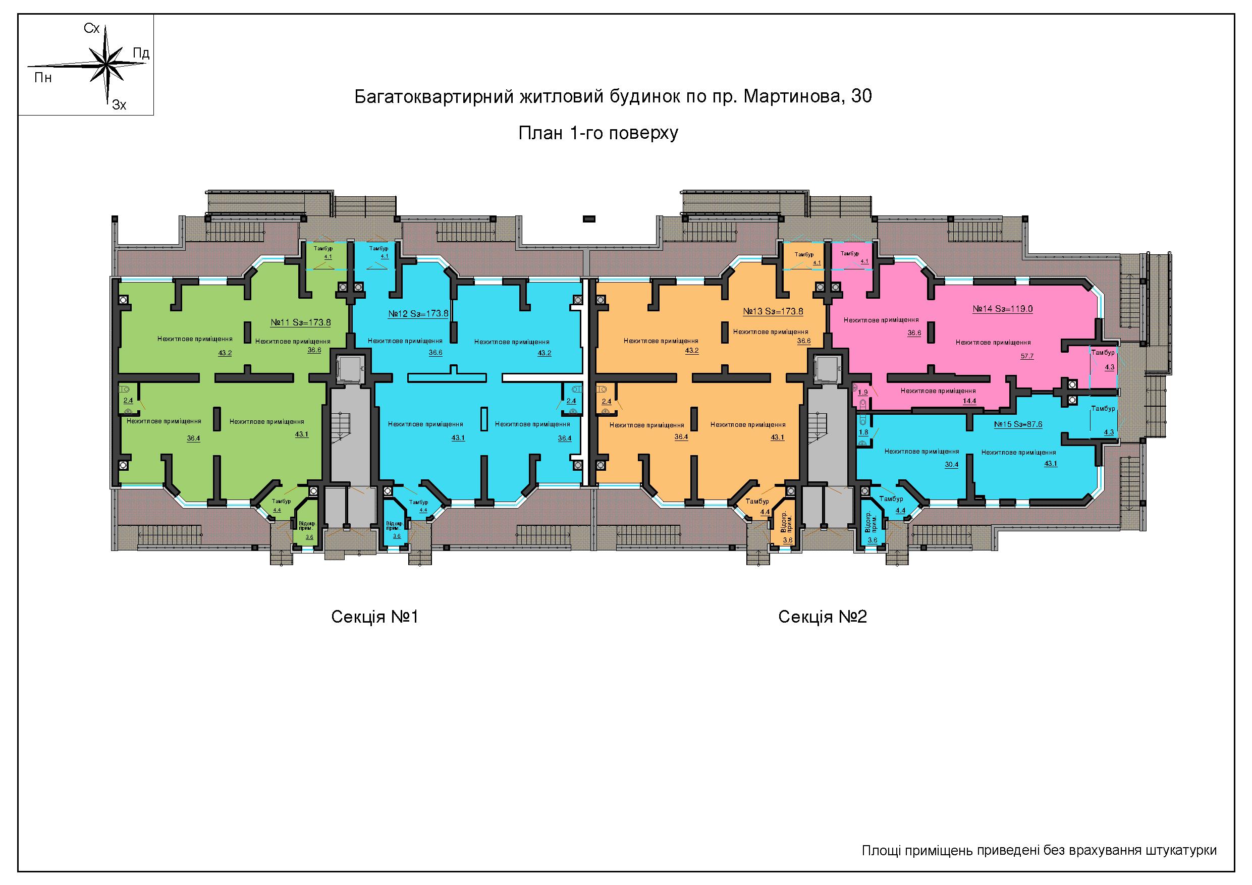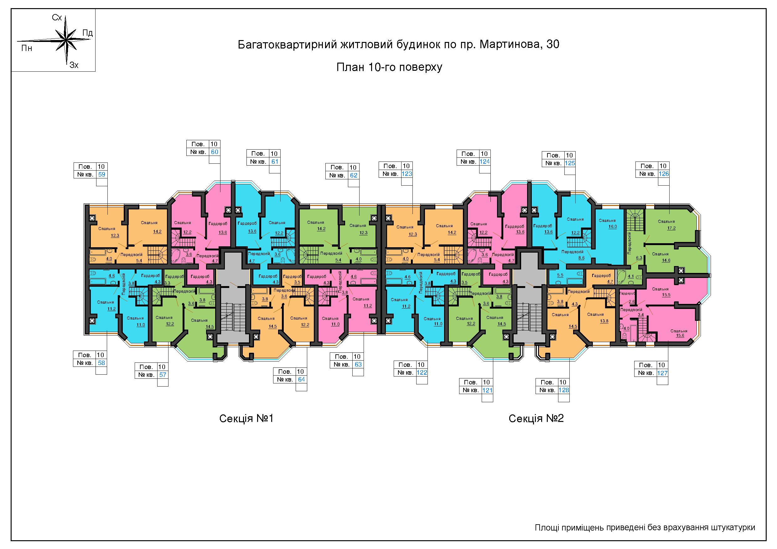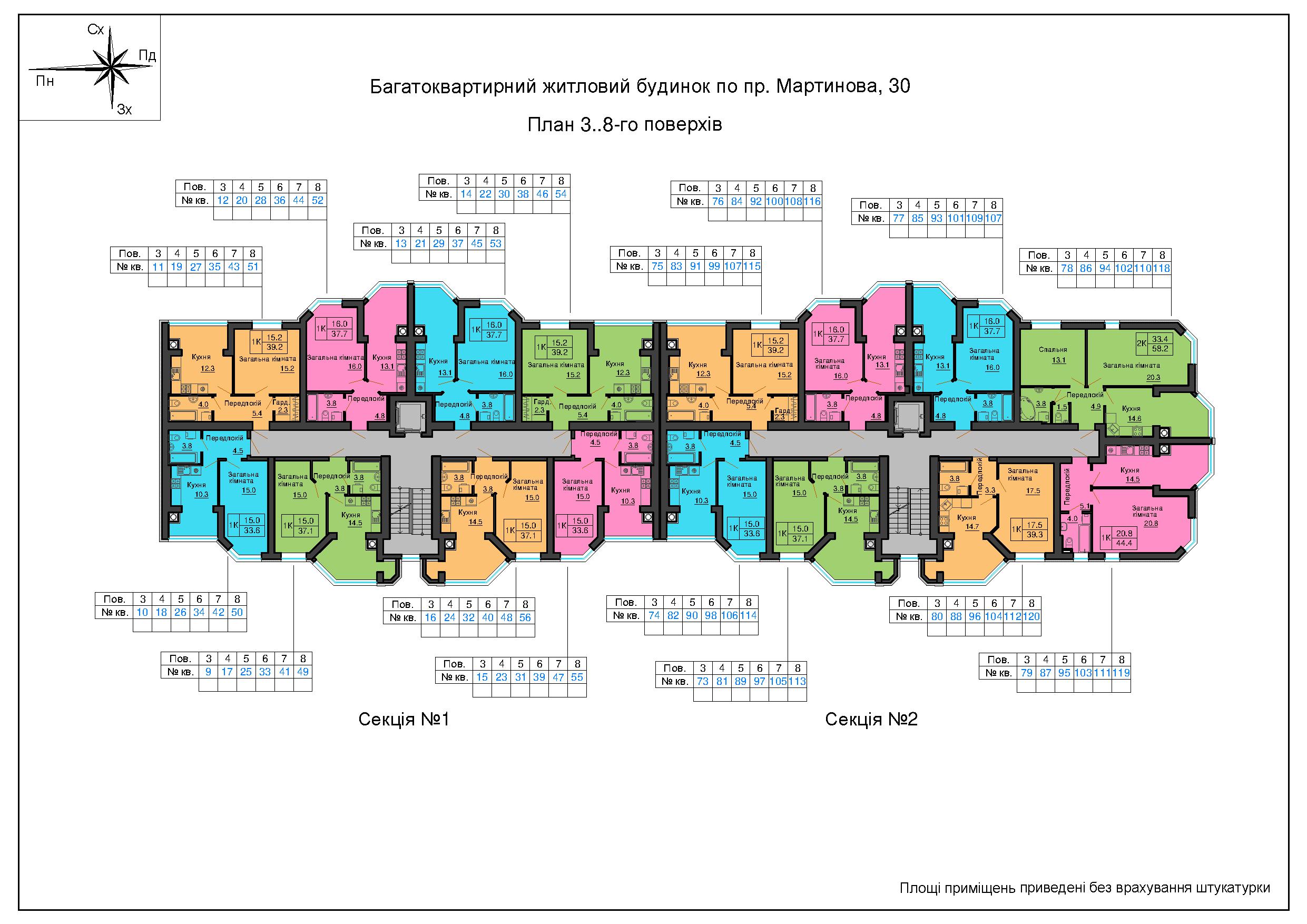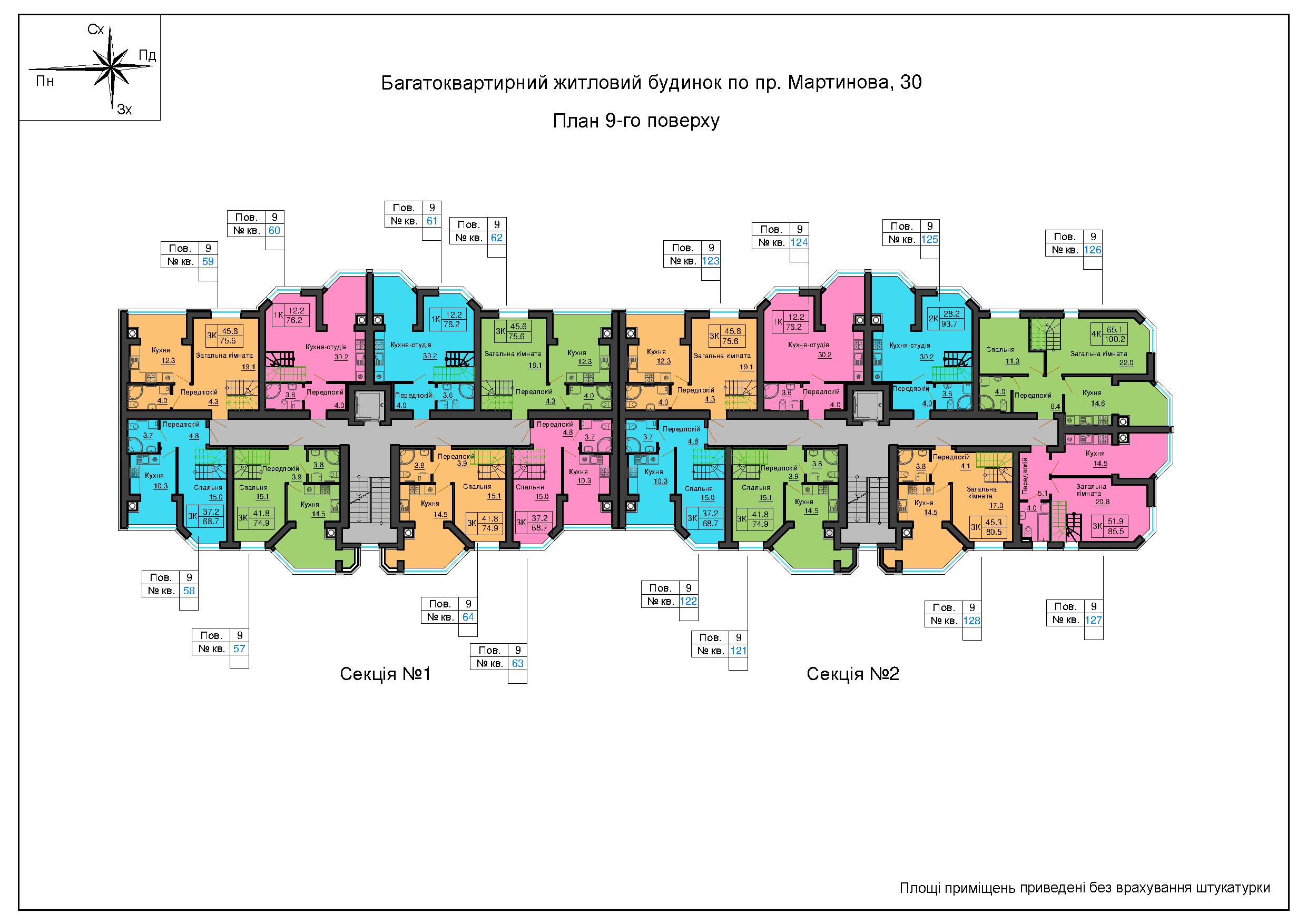 Лінію будинків по проспекту Мартинова продовжує будинок під номером 30. Будинок з 10 поверхів, 2 секції, два під’їзди. Квартири укомплектовані автономними індивідуальними газовими котлами, радіаторами, лічильниками та системою “тепла підлога” на кухні та лоджії. Стіни та підлога йдуть з чорновою обробкою.