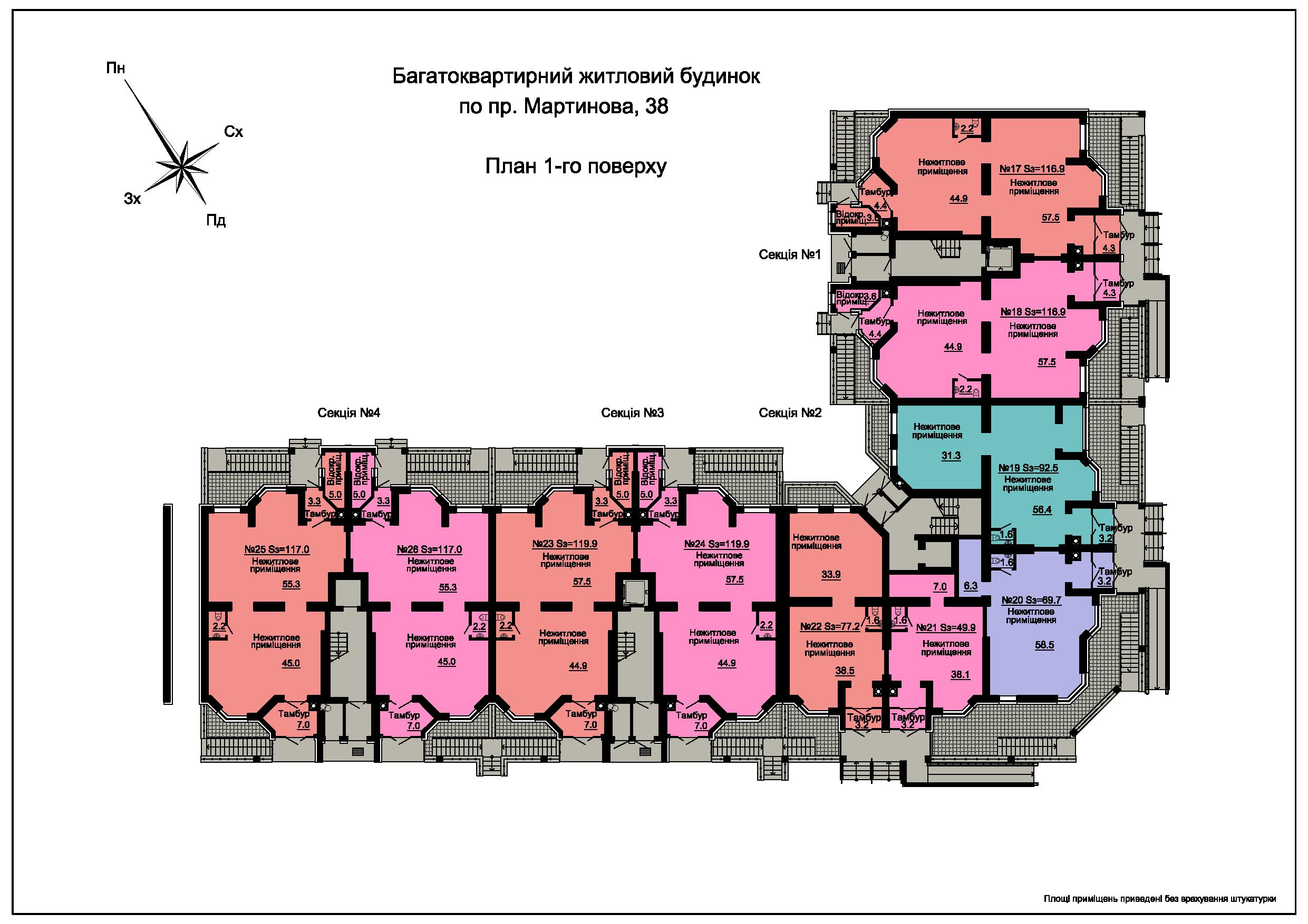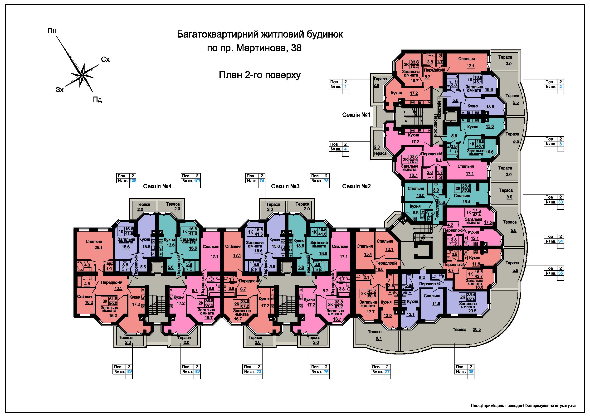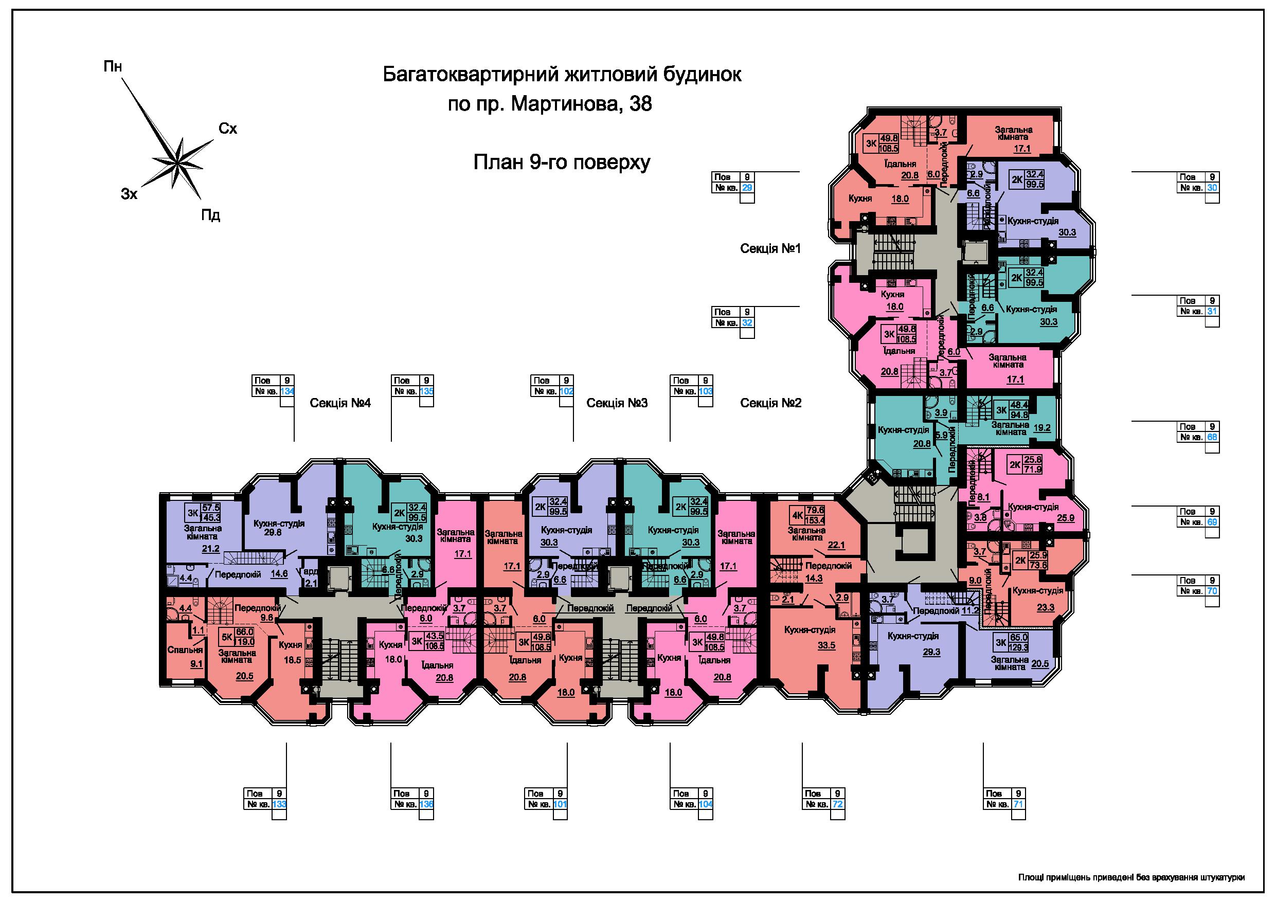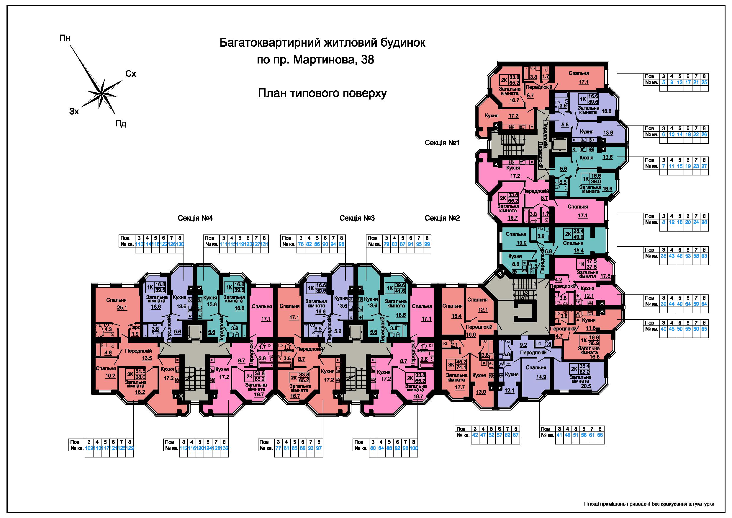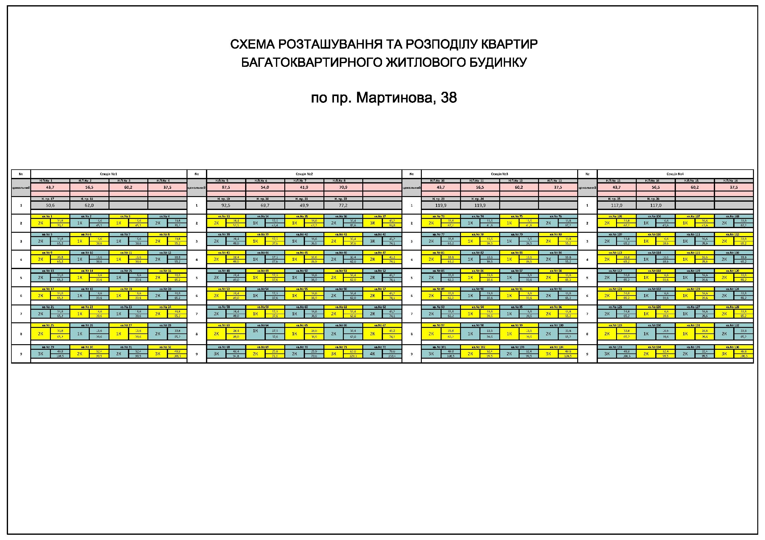 Будинок з 10 поверхів, 4 секції. пр-т Мартинова, 38. Квартири укомплектовані автономними індивідуальними газовими котлами, радіаторами, лічильниками та системою “тепла підлога” на кухні та лоджії. Стіни та підлога йдуть з чорновою обробкою.