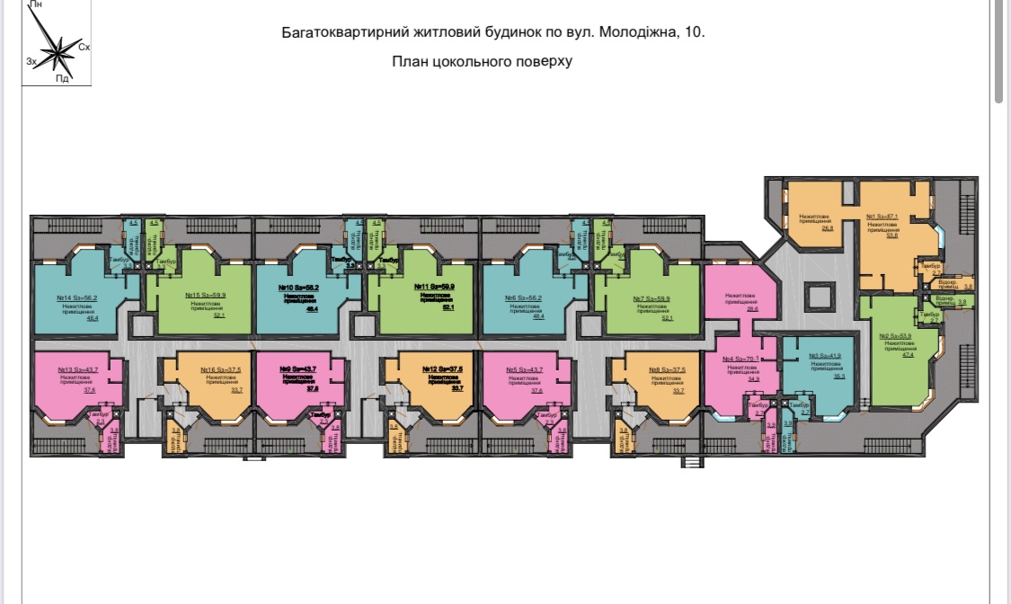Цокольний і перший поверхи займають комерційні приміщення, під офіси, магазини, салони та т.п.