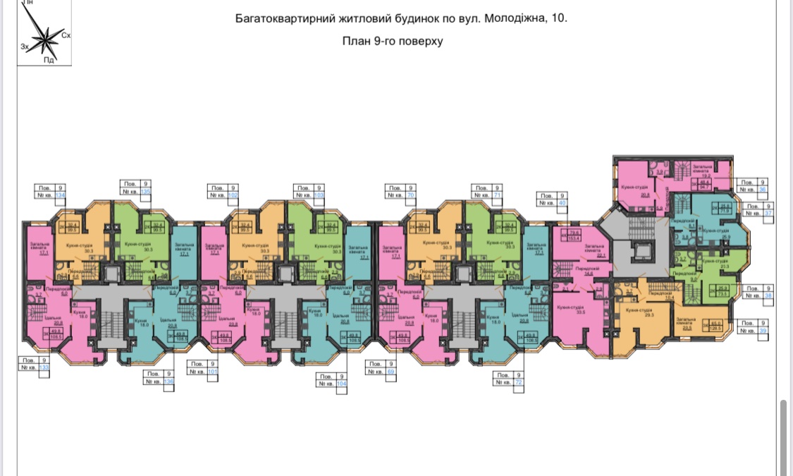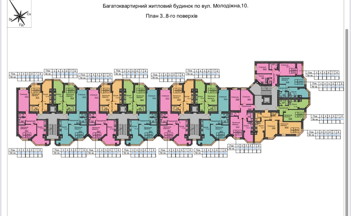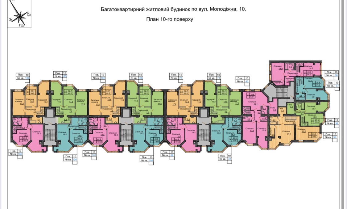 Будинок по вул.Молодіжна, 10 на 136 квартир, 4 секції, 10 поверхів.