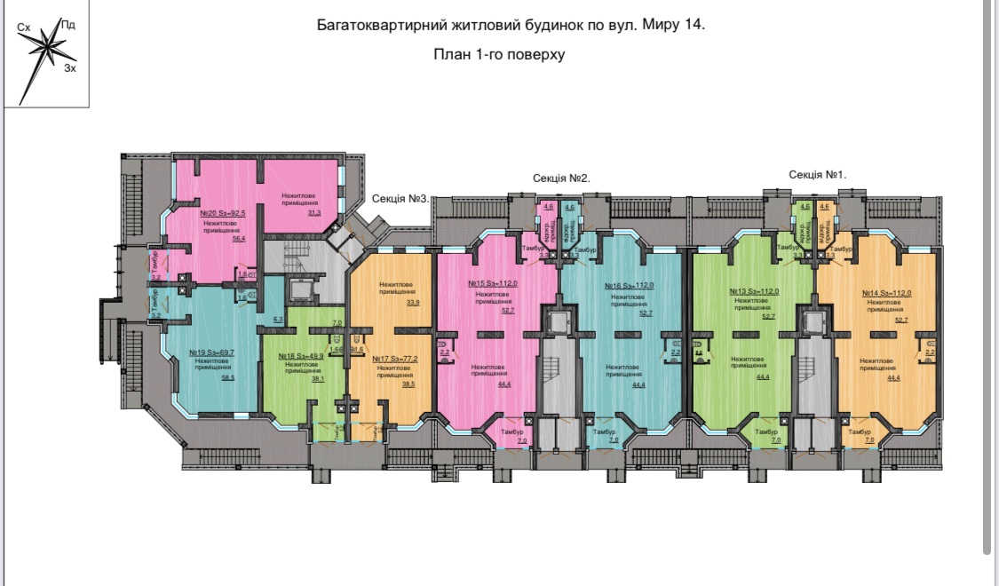 Нижні поверхи займатимуть нежитлового приміщення під офіси, магазини, салони та інші соціально необхідні об’єкти.