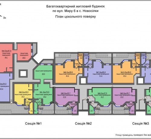 Нежитлові приміщення нижніх поверхів – відведені під оренду. У будинку будуть однокімнатні, двокімнатні та трикімнатні квартири
