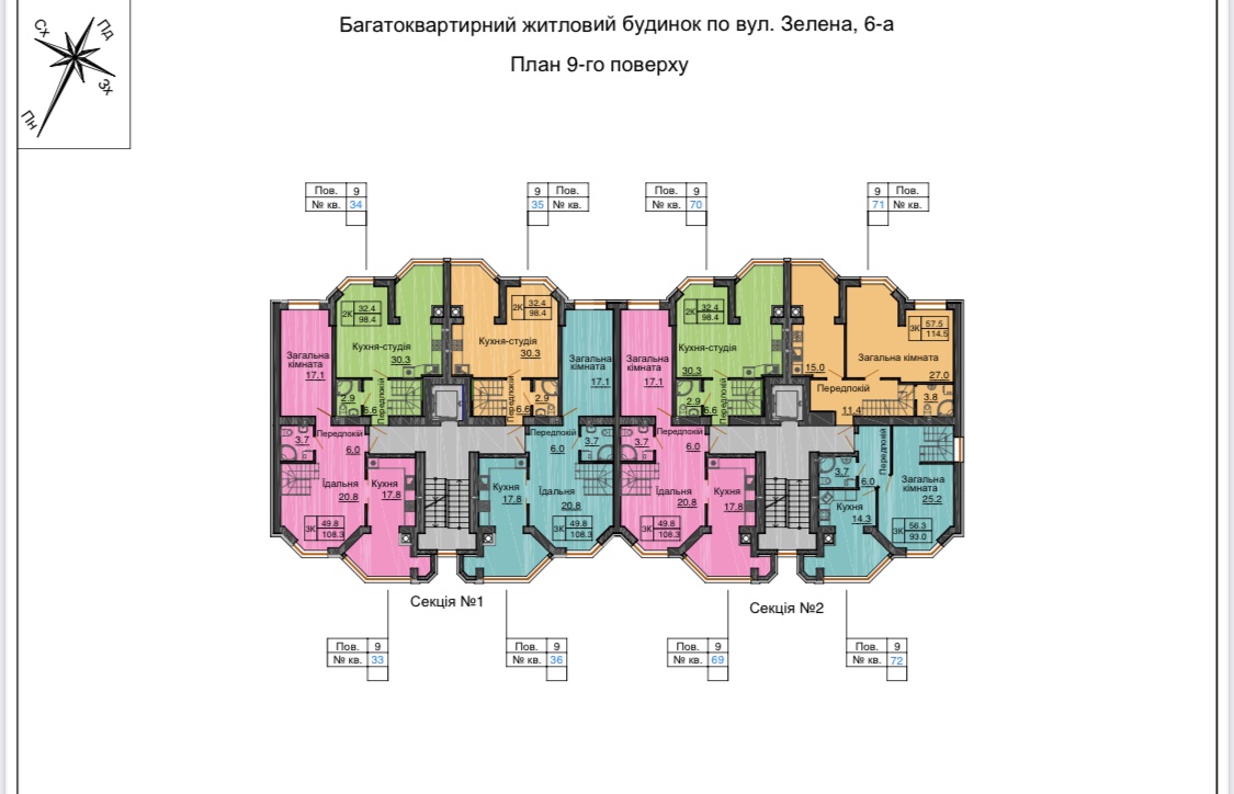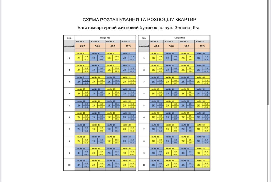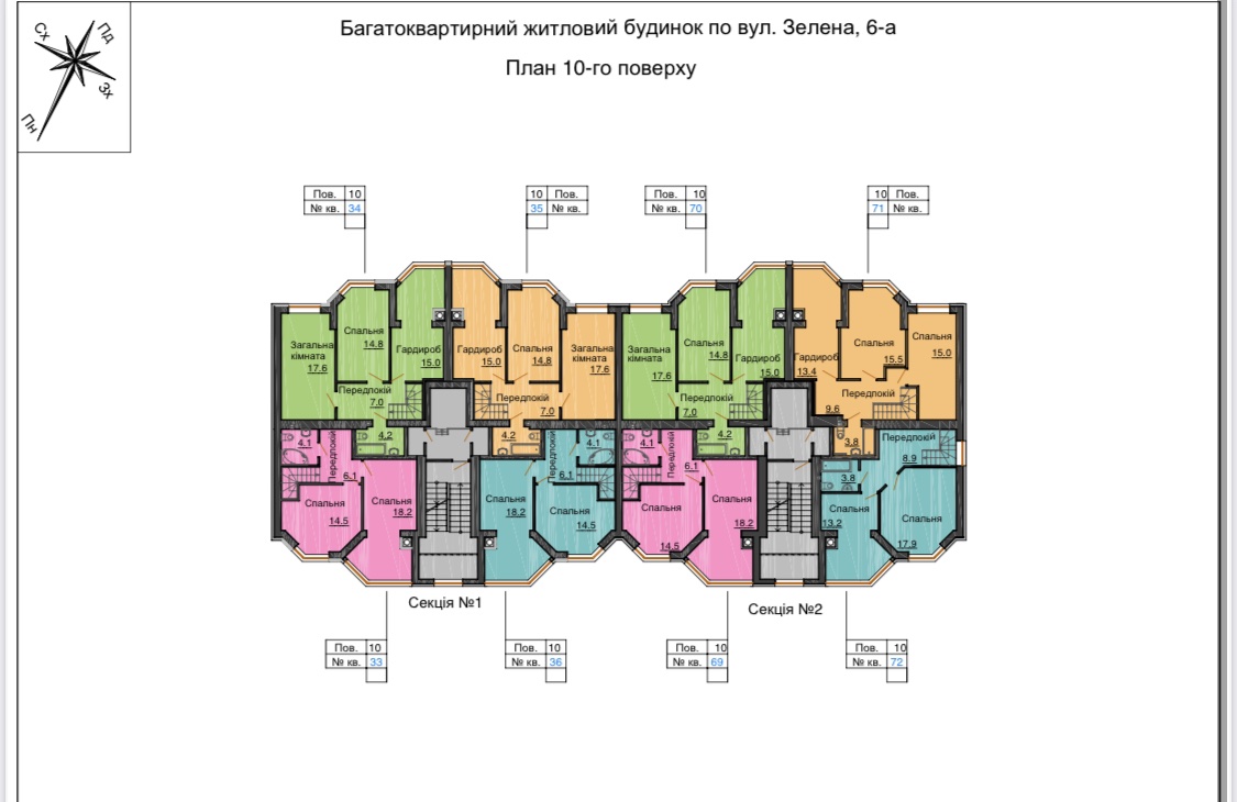 Десятиповерховий будинок в ЖК “Софія Клубний” на дві секції де 72 квартири.