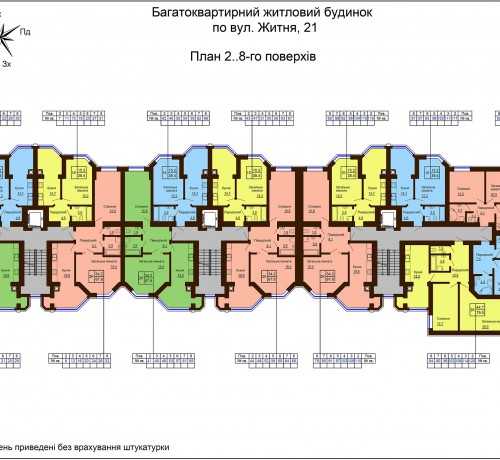 Будинок Житня 21 – сучасний житловий масив, робота над яким завершилася в 2016 році. У ньому 9 поверхів, 126 квартир, 7 цоколів і 23 комори. Двокімнатне житло площею 67.8 кв. м, однокімнатне – 38.4. Кожна квартира підготовлена під ремонтні роботи.