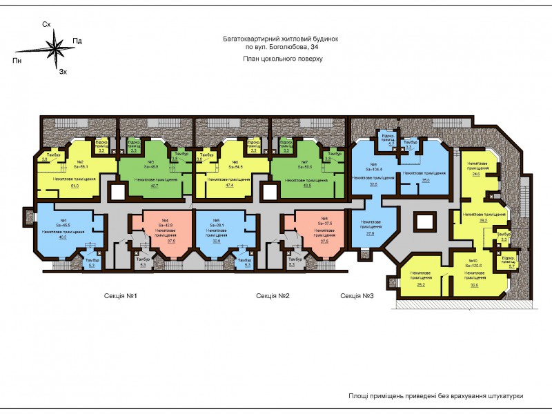 На нижнем ярусе расположены цокольные помещения, которые могут быть арендованы в коммерческих целях под офисы или торговые точки. К преимуществам относится бесплатный паркинг, площадка для отдыха во дворе, множество магазинов, близкорасположенная линия маршрутного такси.