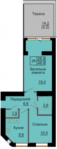 2-Х КІМНАТНА КВАРТИРА 49.00 М/КВ