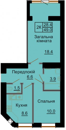 2-Х КІМНАТНА КВАРТИРА 49.00 М/КВ