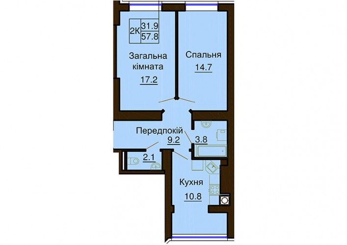 2-Х КІМНАТНА КВАРТИРА 57.80 М/КВ