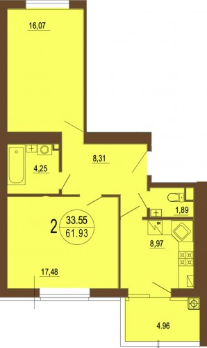 2-Х КІМНАТНА КВАРТИРА 61.93 М/КВ