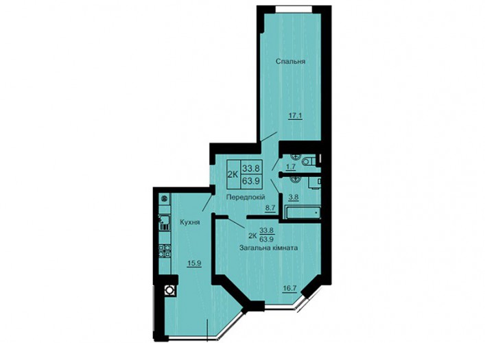 2-Х КІМНАТНА КВАРТИРА 63.90 М/КВ
