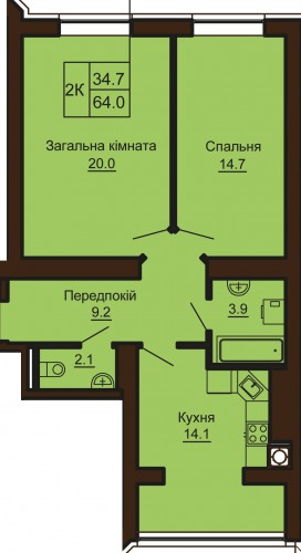 2-Х КІМНАТНА КВАРТИРА 64.00 М/КВ