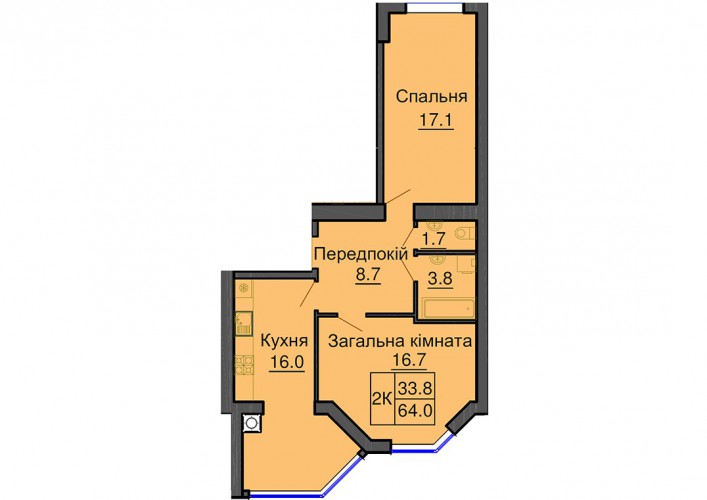 2-Х КІМНАТНА КВАРТИРА 64.00 М/КВ