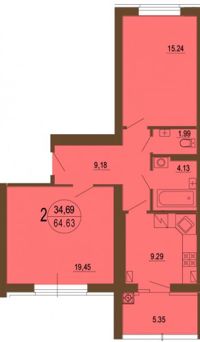2-Х КІМНАТНА КВАРТИРА 64.63 М/КВ