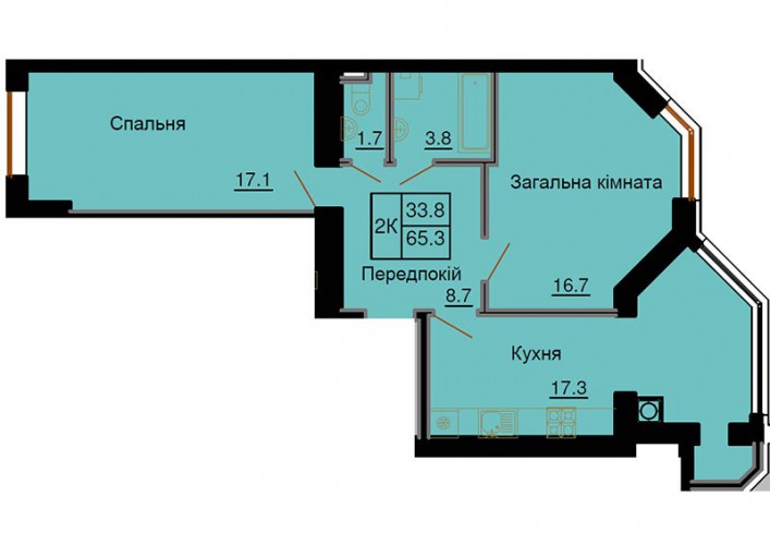 2-Х КІМНАТНА КВАРТИРА 65.30 М/КВ