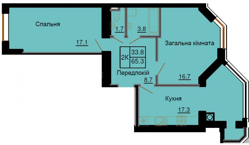 2-Х КІМНАТНА КВАРТИРА 65.30 М/КВ