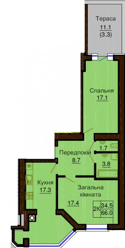 2-Х КІМНАТНА КВАРТИРА 66.00 М/КВ