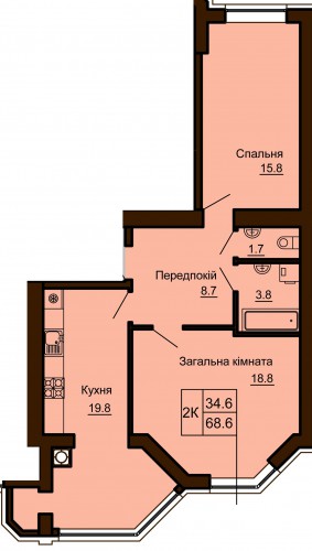 Головна / 2-Х КІМНАТНА КВАРТИРА 68.60 М/КВ