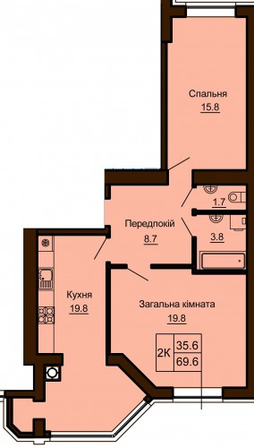 2-Х КІМНАТНА КВАРТИРА 69.60 М/КВ