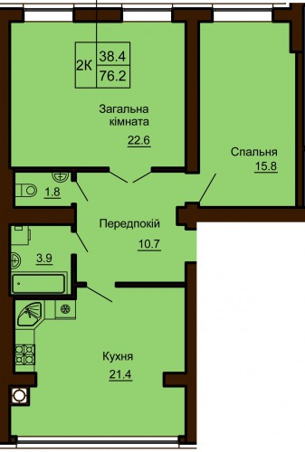 2-Х КІМНАТНА КВАРТИРА 76.20 М/КВ