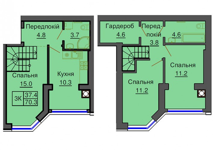 ДВОРІВНЕВА КВАРТИРА 70.30 М/КВ