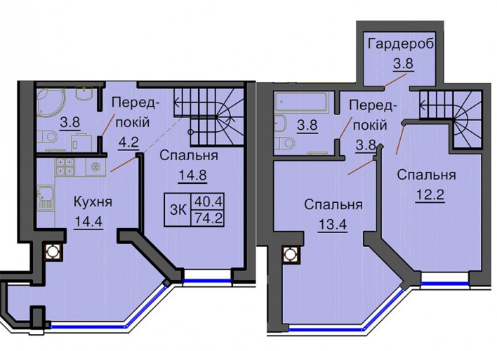 ДВОРІВНЕВА КВАРТИРА 74.20 М/КВ