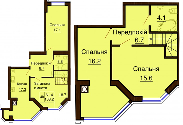 ДВОРІВНЕВА КВАРТИРА 108.20 М/КВ