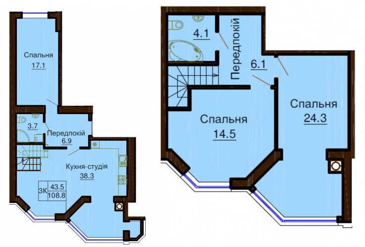 ДВОРІВНЕВА КВАРТИРА 108.70 М/КВ