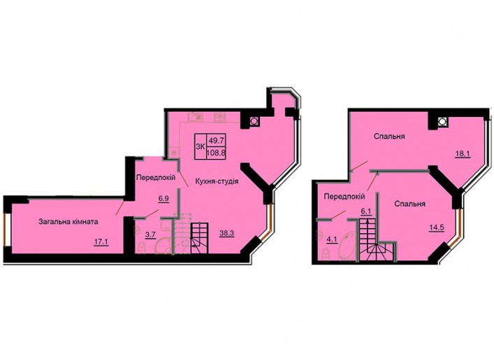 ДВОРІВНЕВА КВАРТИРА 108.70 М/КВ