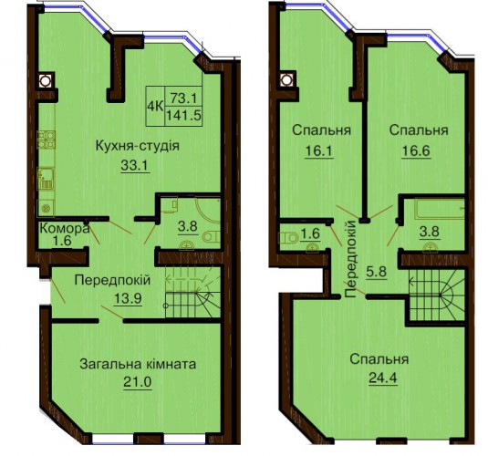 ДВОРІВНЕВА КВАРТИРА 141.50 М/КВ