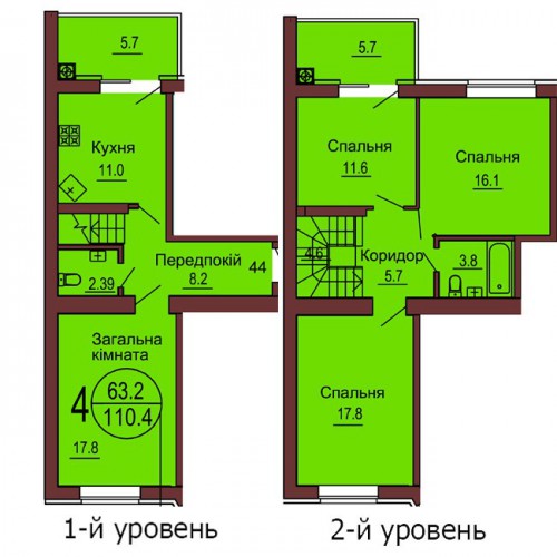 ДВОРІВНЕВА КВАРТИРА 110.40 М/КВ
