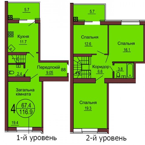 ДВОРІВНЕВА КВАРТИРА 116.90 М/КВ