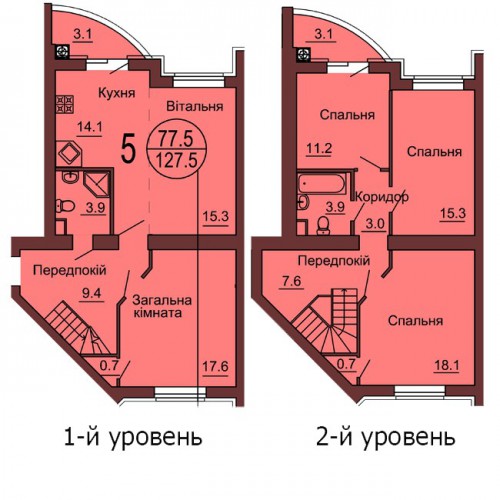 ДВОРІВНЕВА КВАРТИРА 127.50 М/КВ