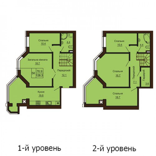 ДВОРІВНЕВА КВАРТИРА 128.30 М/КВ