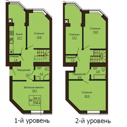 ДВОРІВНЕВА КВАРТИРА 132.20 М/КВ