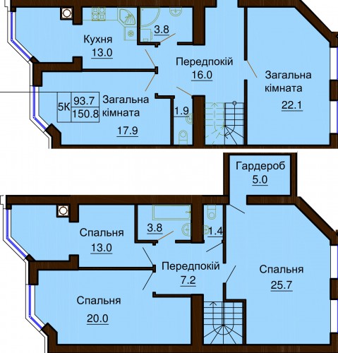 ДВОРІВНЕВА КВАРТИРА 150.80 М/КВ