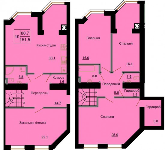 ДВОРІВНЕВА КВАРТИРА 151.20 М/КВ