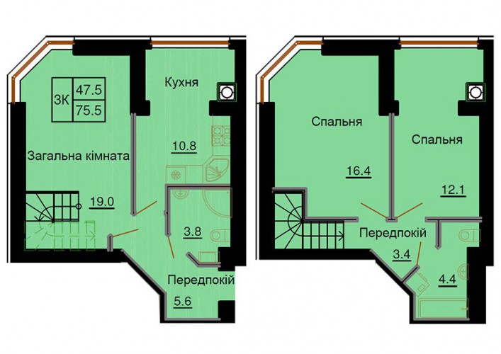 ДВОРІВНЕВА КВАРТИРА 75.50 М/КВ