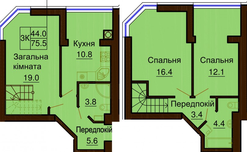 ДВОРІВНЕВА КВАРТИРА 75.50 М/КВ