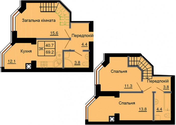 ДВОРІВНЕВА КВАРТИРА 69.20 М/КВ