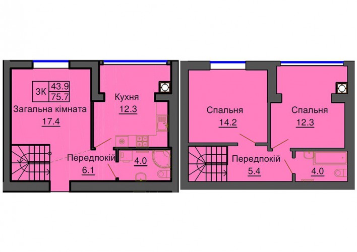 ДВОРІВНЕВА КВАРТИРА 75.70 М/КВ