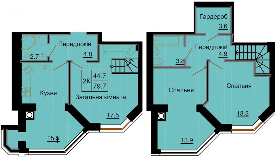 ДВОРІВНЕВА КВАРТИРА 79.70 М/КВ