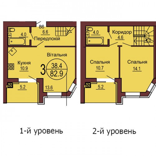 ДВОРІВНЕВА КВАРТИРА 82.90 М/КВ