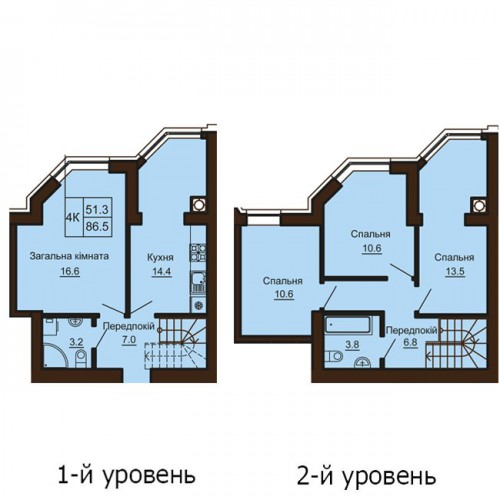 ДВОРІВНЕВА КВАРТИРА 86.50 М/КВ