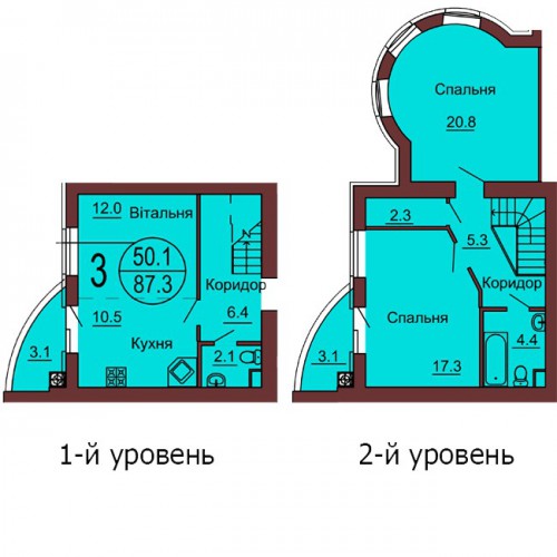 ДВОРІВНЕВА КВАРТИРА 87.30 М/КВ