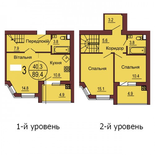 ДВОРІВНЕВА КВАРТИРА 89.40 М/КВ