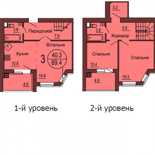ДВОРІВНЕВА КВАРТИРА 89.40 М/КВ