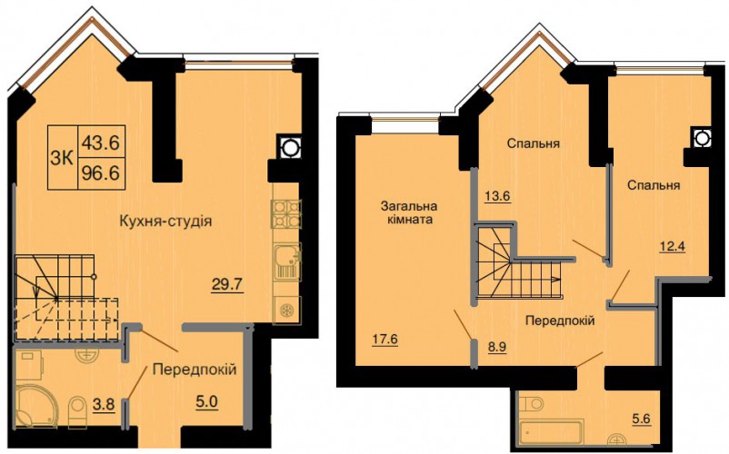 ДВОРІВНЕВА КВАРТИРА 96.60 М/КВ