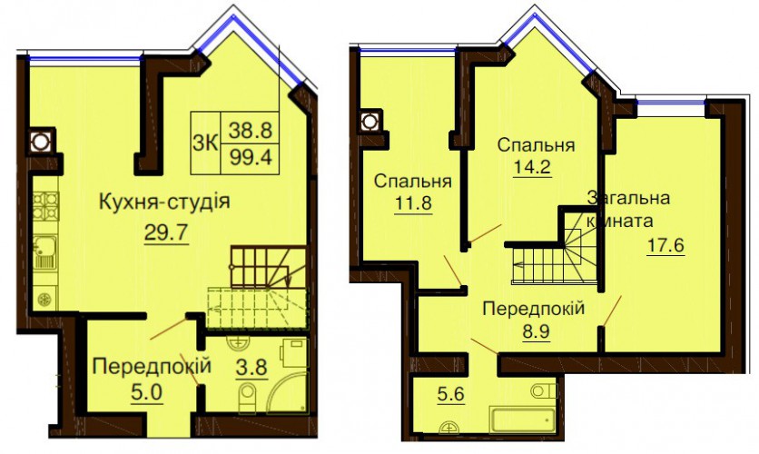 ДВОРІВНЕВА КВАРТИРА 99.40 М/КВ