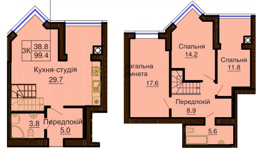 ДВОРІВНЕВА КВАРТИРА 99.40 М/КВ